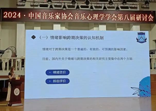 博士生吴迪代表其所在的杭州师范大学研究团队,介绍了通过维度模型和离散模型评估音乐情绪,发现维度模型更适用于描述中等程度情绪,而熟悉度能增强情绪感知。该研究提出要建立中国民族情绪音乐库,该音乐库对跨文化音乐情绪研究具有重要价值。